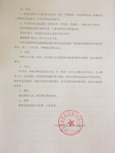 關(guān)于2017年蘭州城市供水(集團(tuán))有限公司開(kāi)展外部招聘的公告